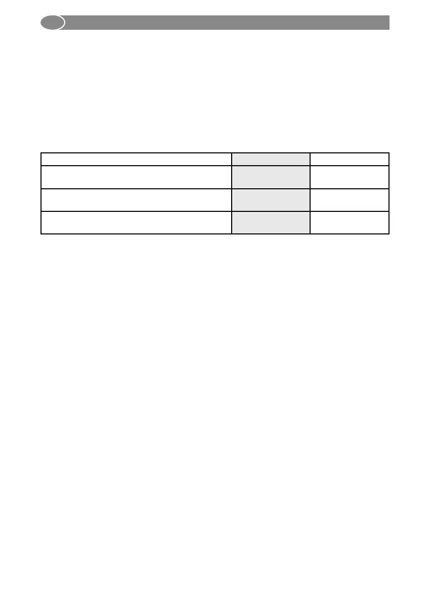 4.4. Selection table for settings: