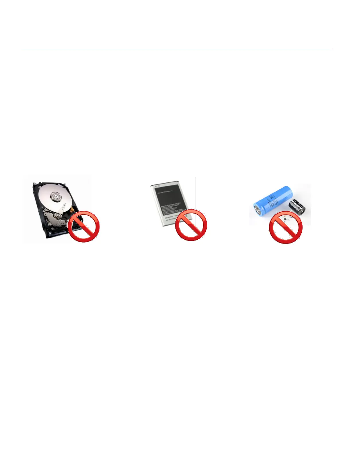 The following items should never be destroyed using this unit. ALWAYS remove batteries and capacitors as well as