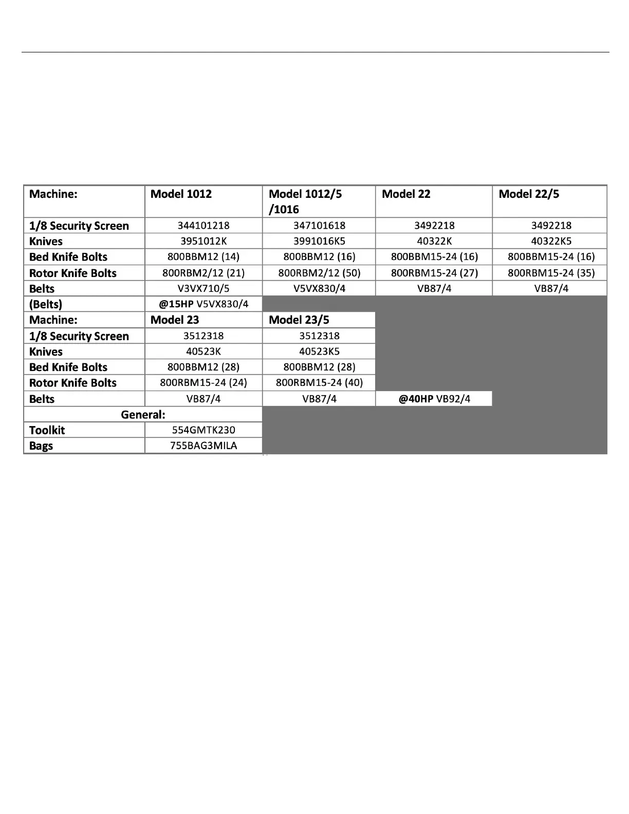 NOTE: Refer to part numbers when ordering replacement parts. Check the parts carefully as knives and screens generally have