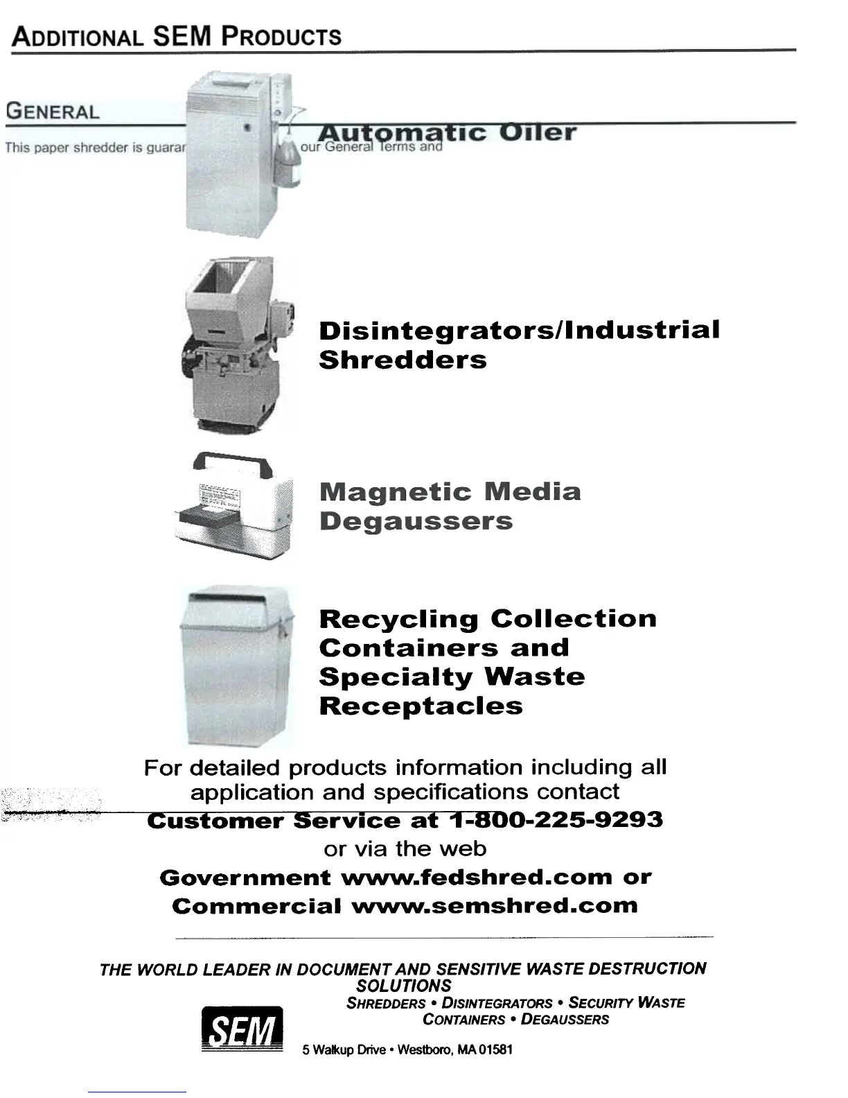 ... aJ J I W, . SHREDDERS. DISINTEGRATORS. SECURITY WASTE