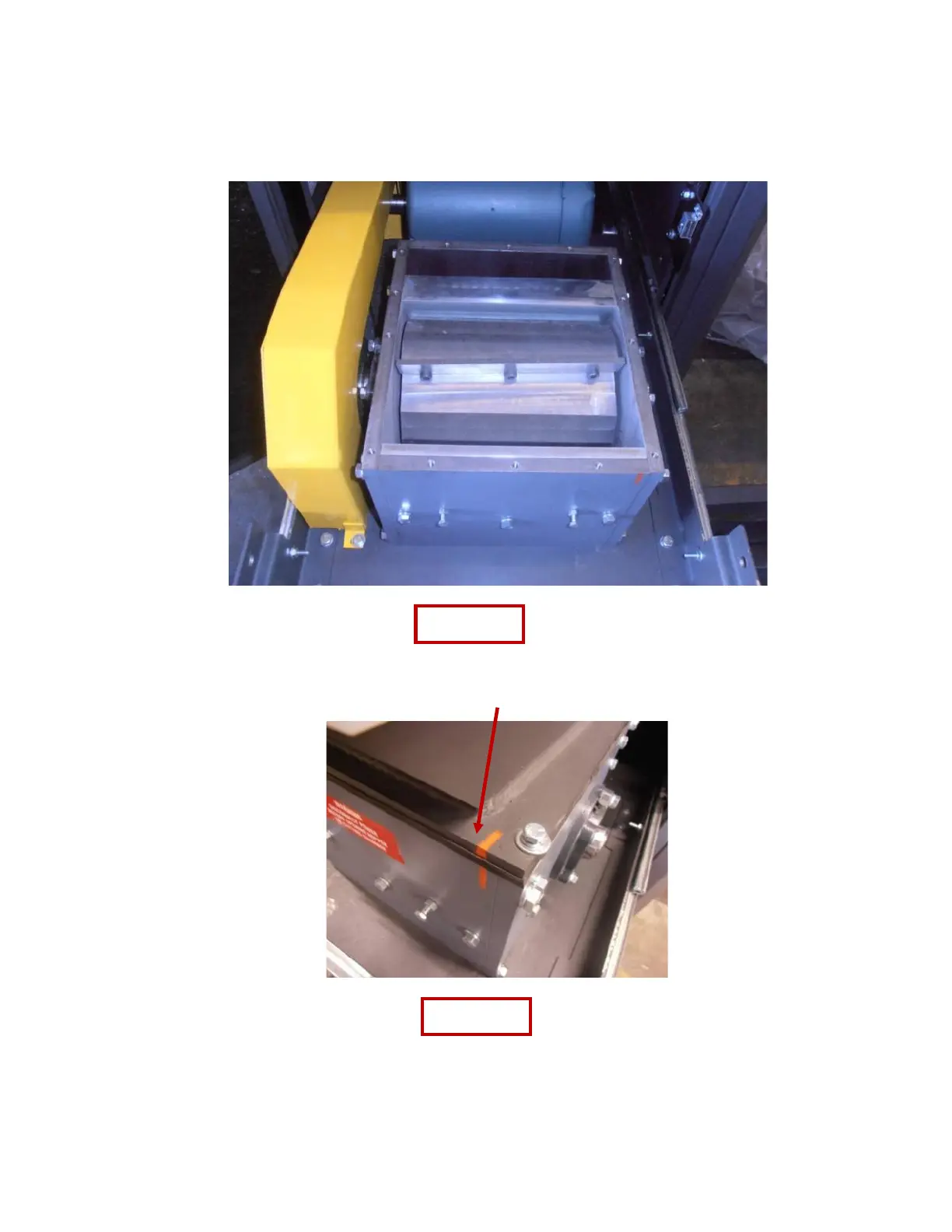 7. Loosen the bolts of the brush and move it up so it clears the hopper. Snug one bolt so it stays in position