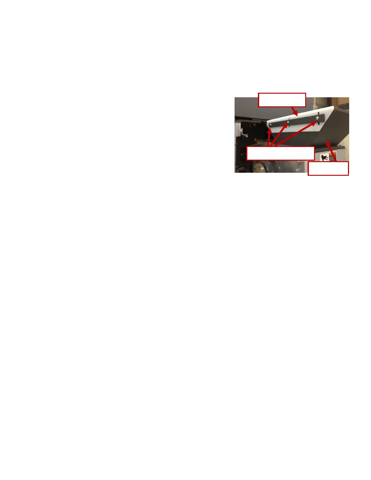 • Located on either side of the hopper are plastic shields that may require periodic adjustment.