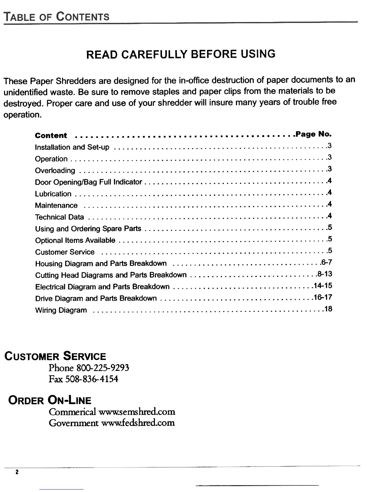 destroyed. Proper care and use of your shredder will insure many years of trouble free