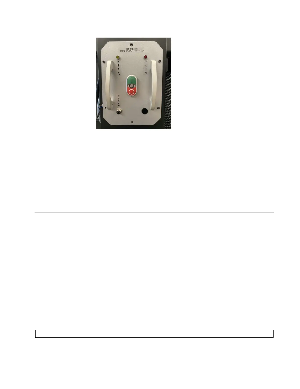 3. Turn on the vacuum fan system by pressing the I button on its control panel.