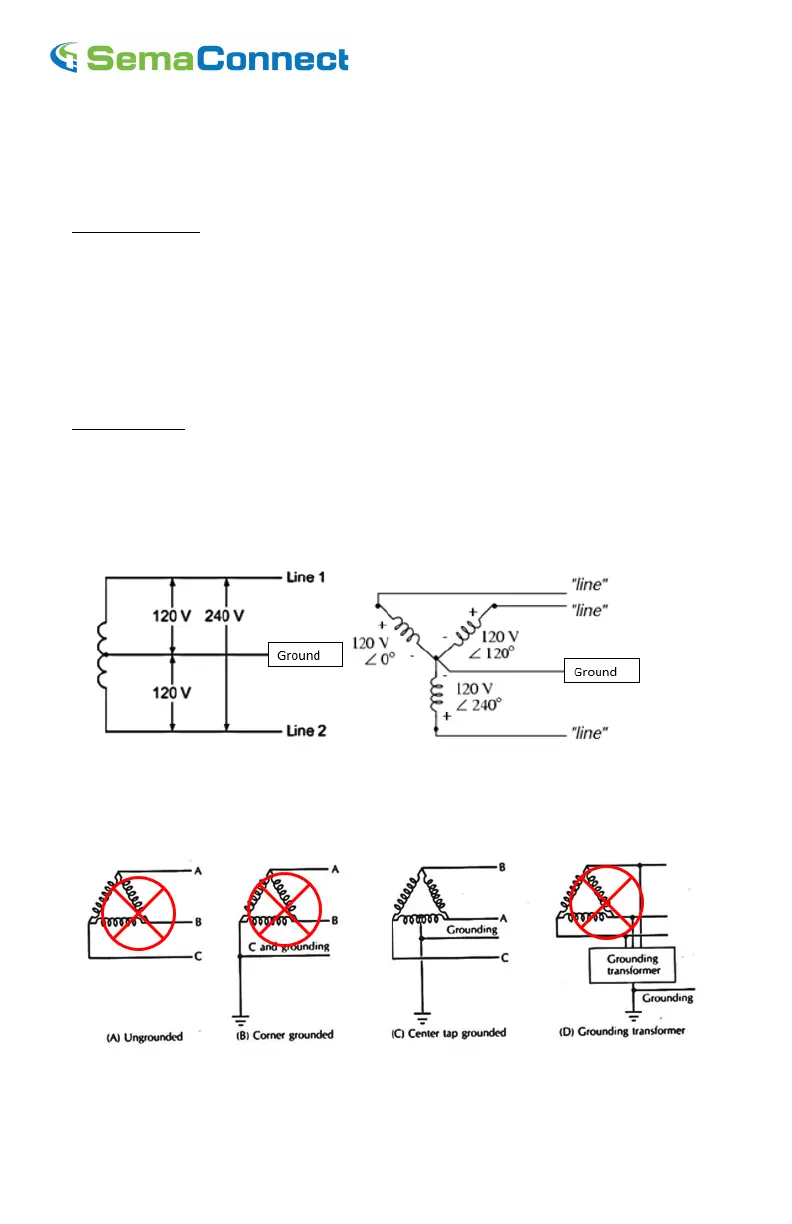 • 208 VAC three phase , Delta system, Center tap grounded (use only two phases)