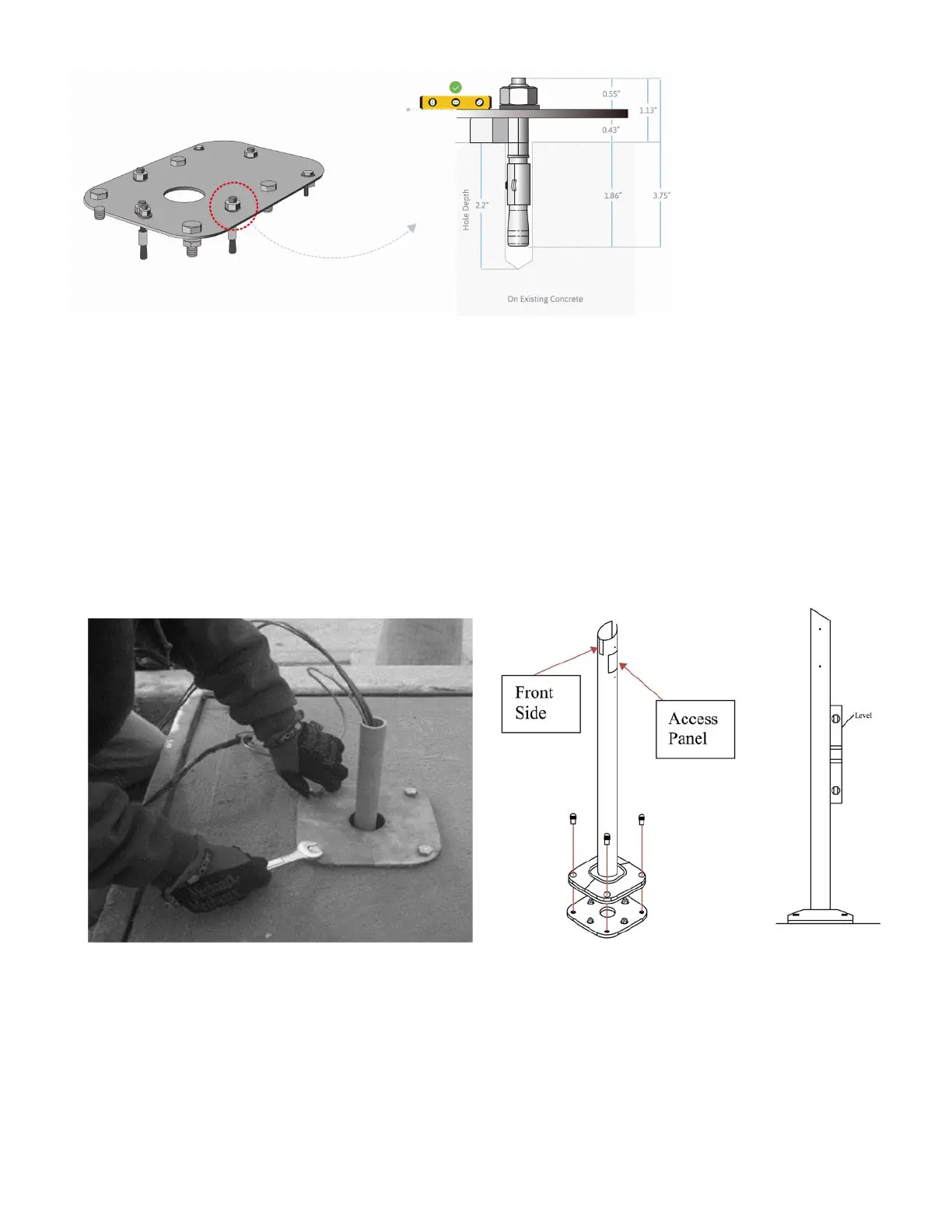 • Once the concrete has set, remove the Sacrificial bolts from the anchor plate.