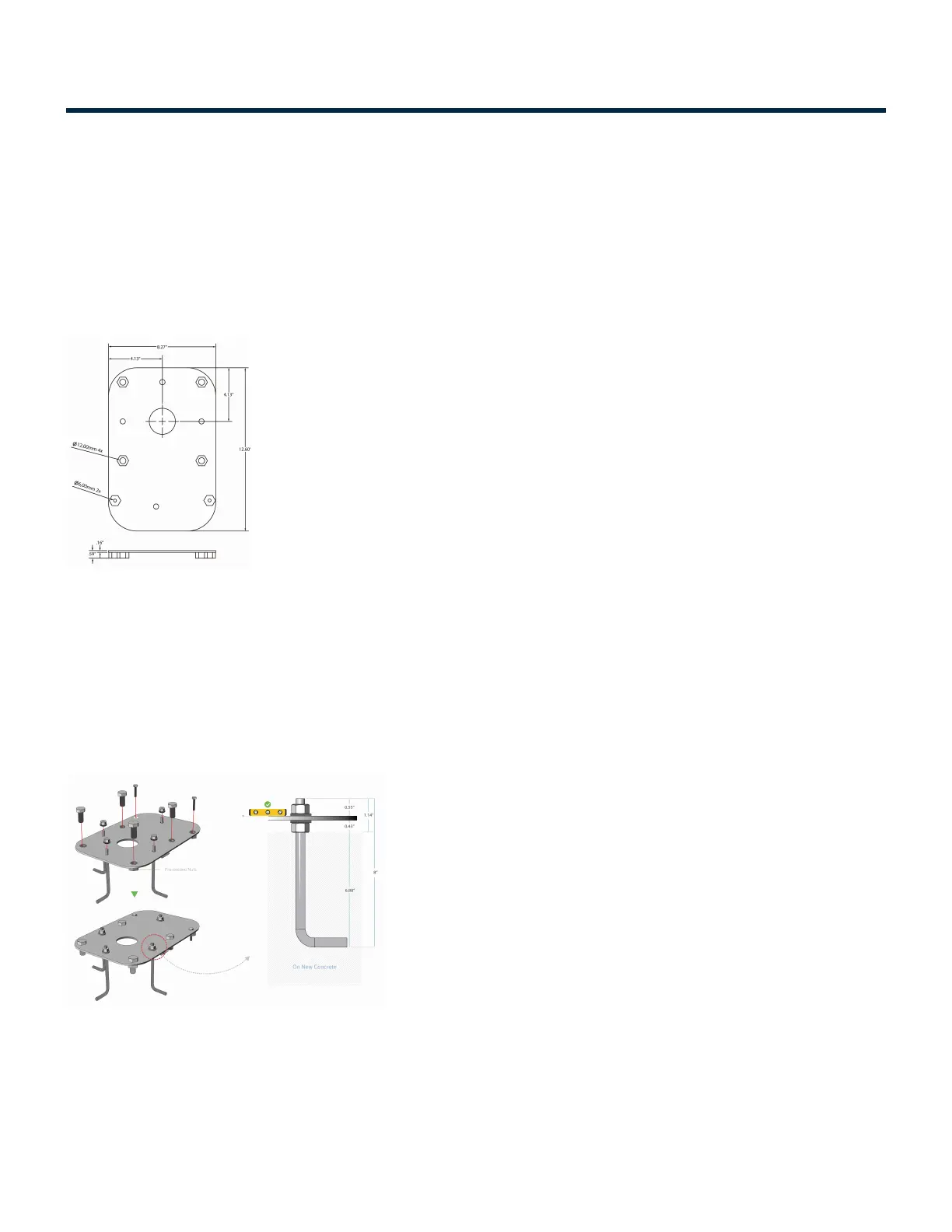 • Make sure that only one thread of the top nut is visible after the J-Bolts are fitted to the anchor plate