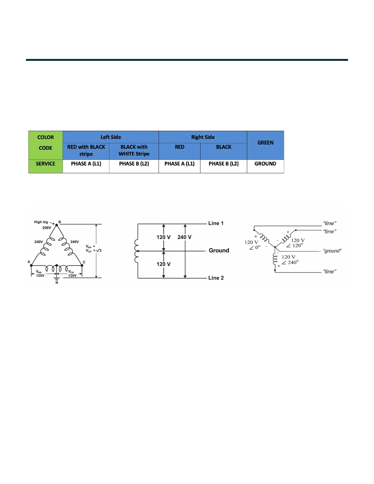 1. 240 VAC three phase, Delta system, Center tap grounded