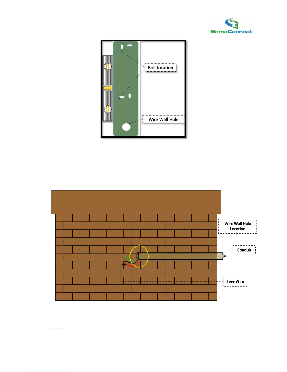 NOTE: If the conduit is run on the same side of the wall as the charging station the wires are then