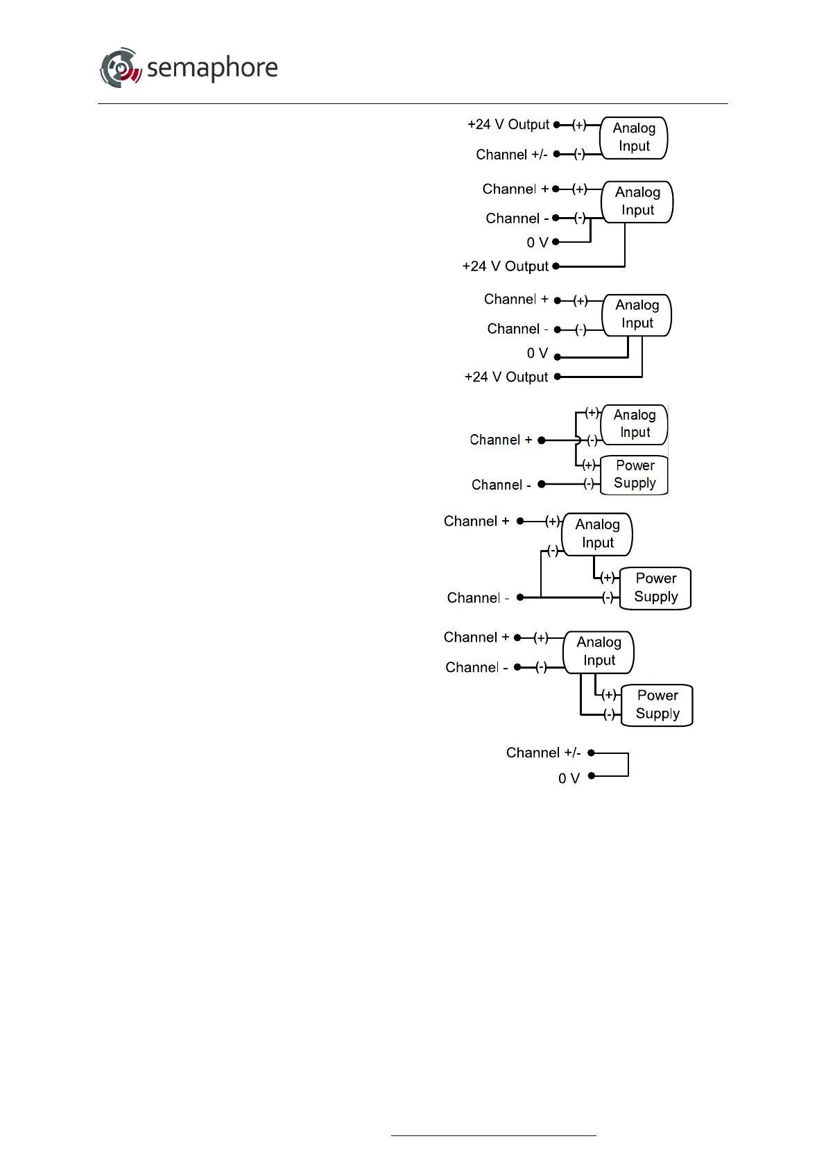 Note: Any channels sharing the same power source (e.g. +24 V from module or a field power supply)