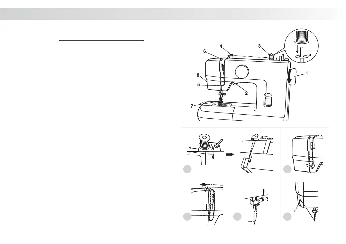 - Place the thread and spool pin felt (a) onto the spool pin. (3)