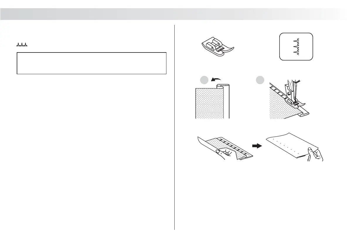 needle swings off the left edge of the fabric to form a small