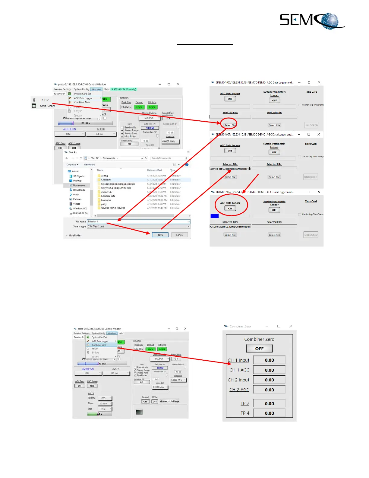 Figure 2-25 shows the Combiner Zero feature, which allows the user to monitor the CH1 and CH2 AGC
