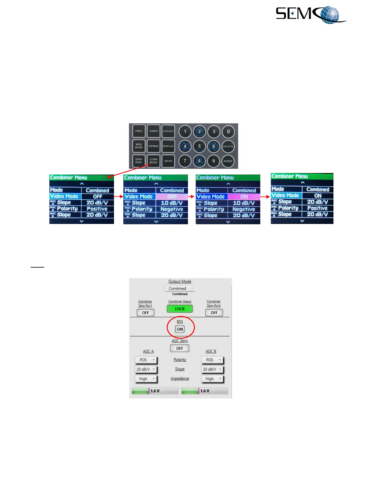 remote GUI. When BSS is ON, the Combiner becomes a “Best Source Selector” that automatically
