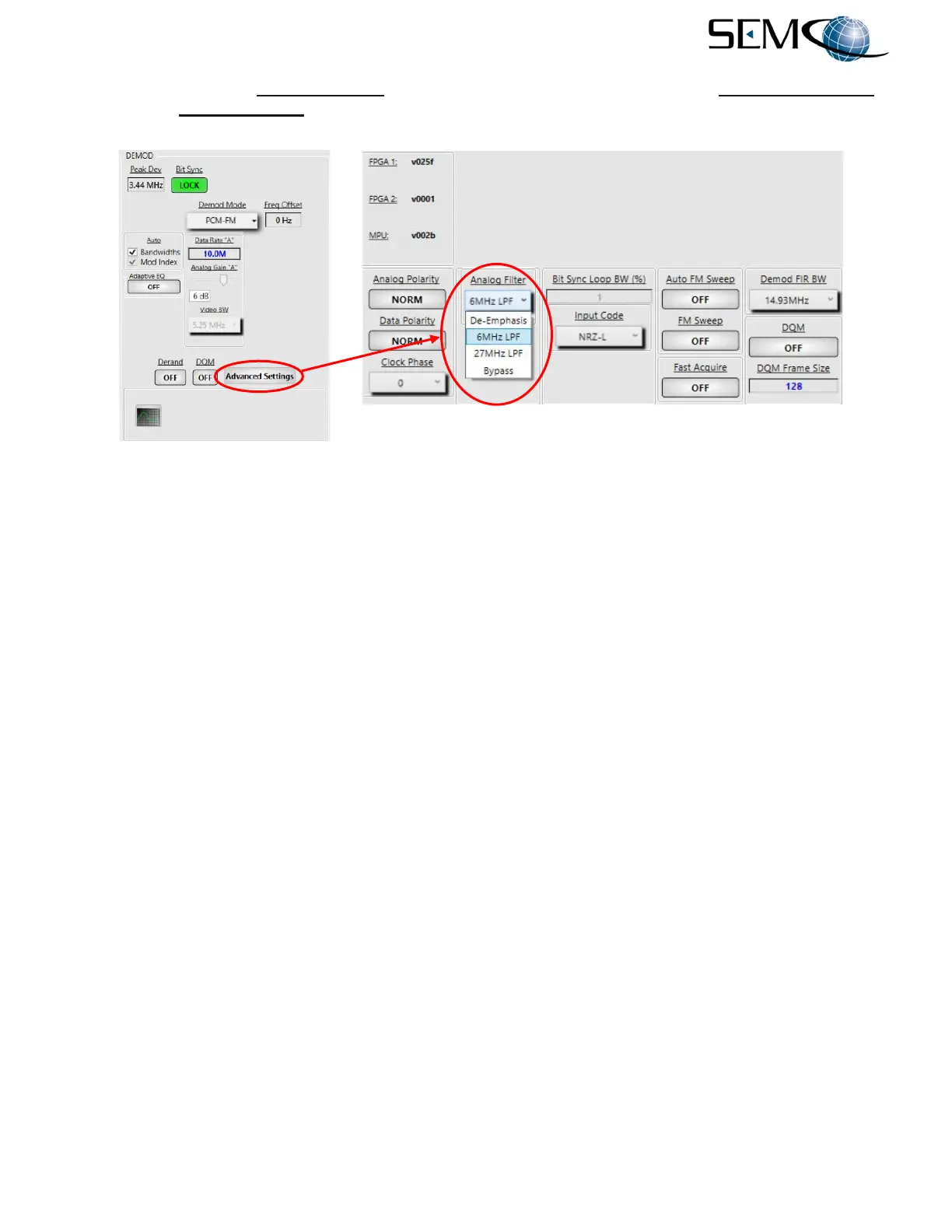 Figure 6-30 shows the Low Pass Filter using the remote GUI. The user clicks on Advanced Settings