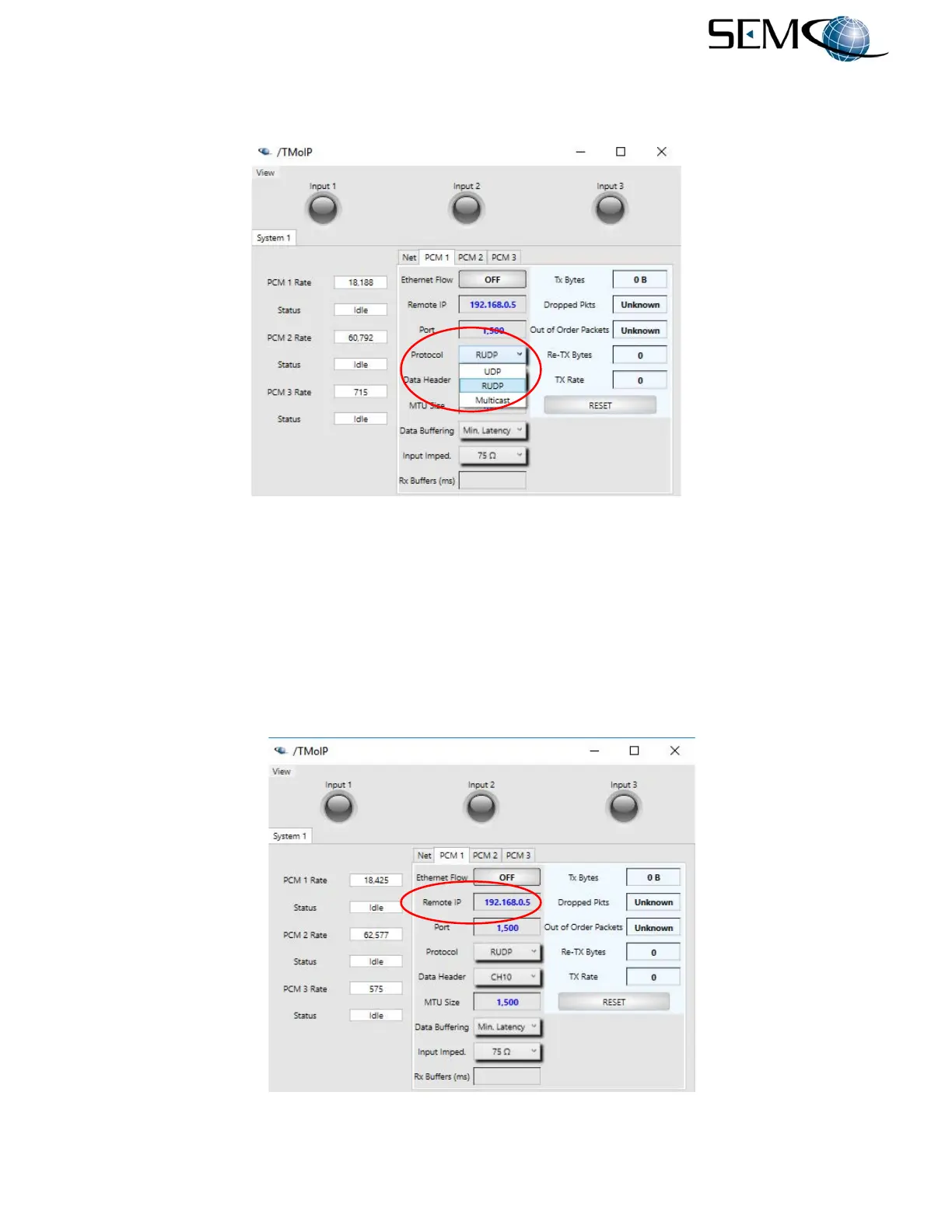 Each channel has its own remote IP address parameter and can communicate with individual chassis and