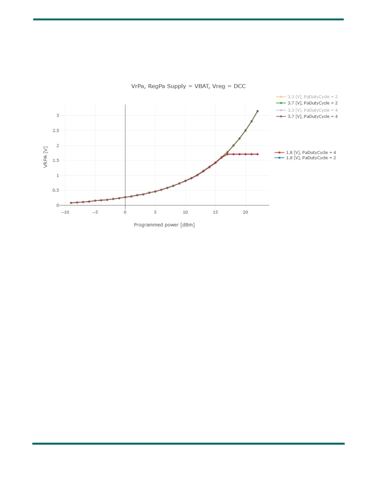 different PaDutyCycle settings and over the supply voltage. The supply voltage has no impact on the output power, since