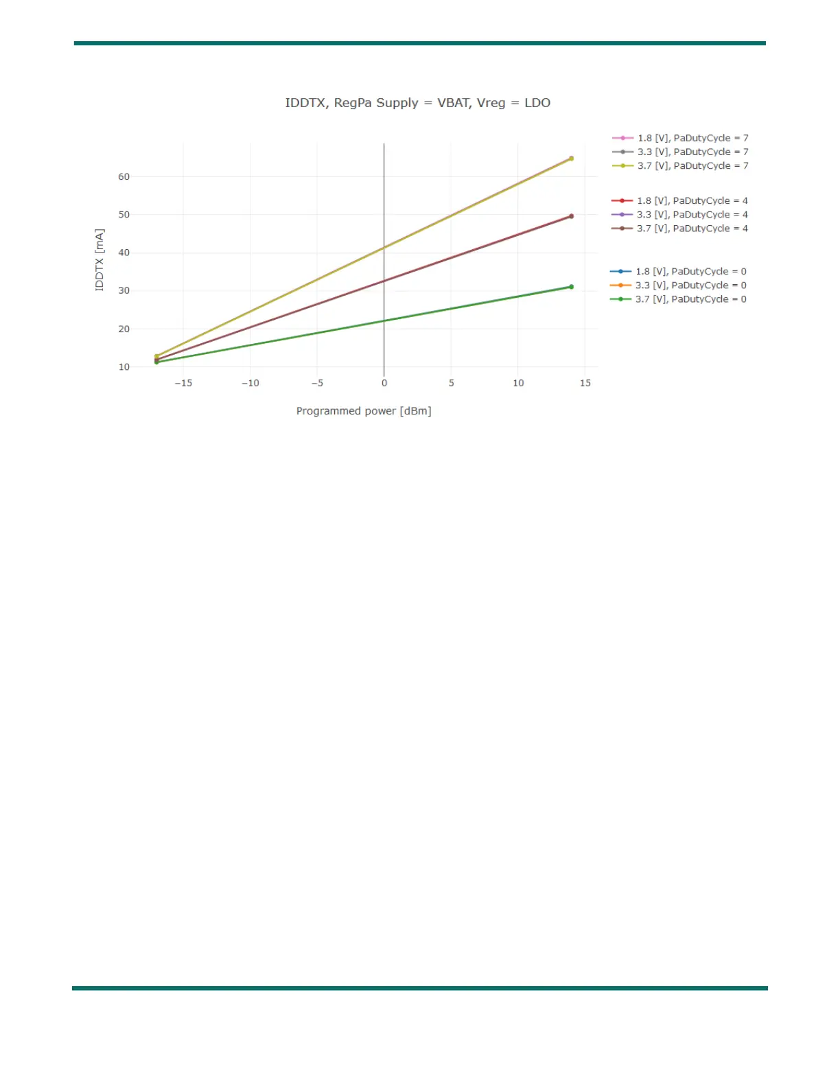 • For 1.8 V, the current consumption is approx. 69mA for PaDutyCycle=2, and approx. 81 mA for PaDutyCycle=4. This is