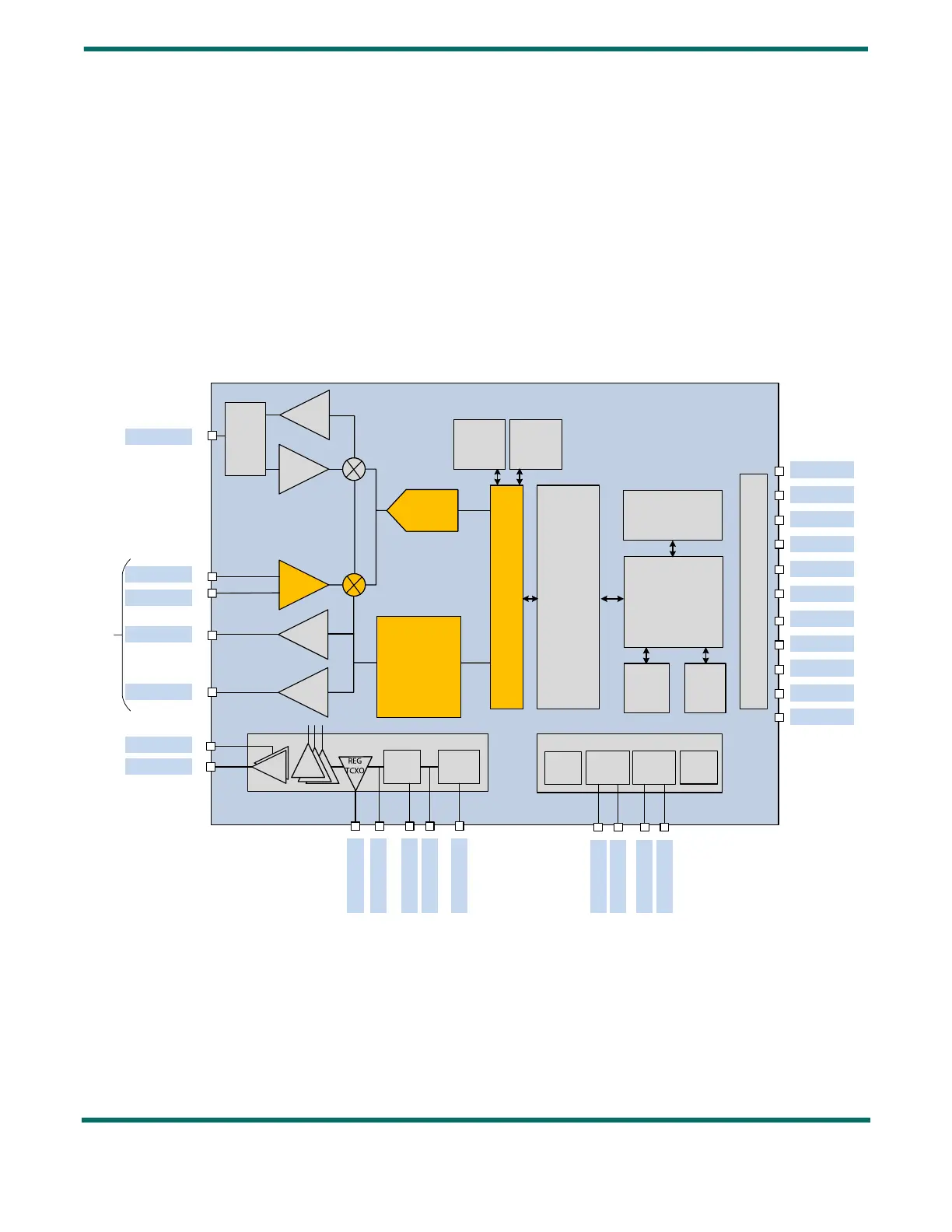 three TX paths ( High Power, Low Power and High Frequency), and two RX paths, followed by a high-bandwidth ADC. Both
