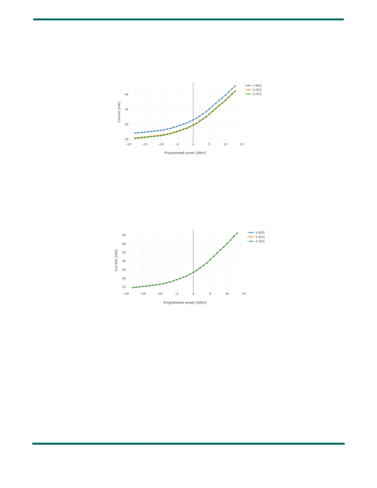 The current consumption is optimum for a supply voltage equal or greater to 3.3V, therefore the plots for 3.3V and 3.7V are