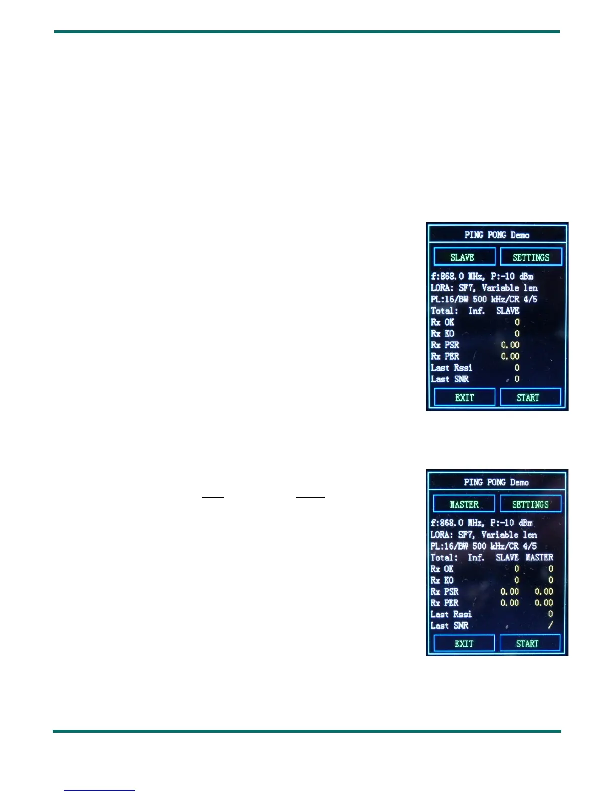 A Ping Pong Test is a bidirectional test between a pair of SX1261/SX1262 kits. One kit needs to be configured as