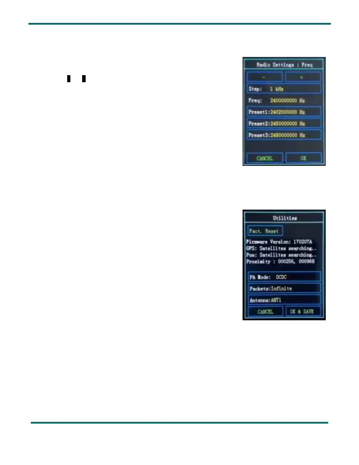 In this menu you can reset the SX1280 Development Kit to its factory settings: