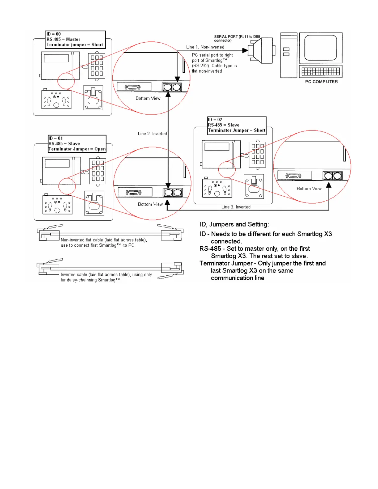 Figure 2. Data Cable Connections and Clock Settings