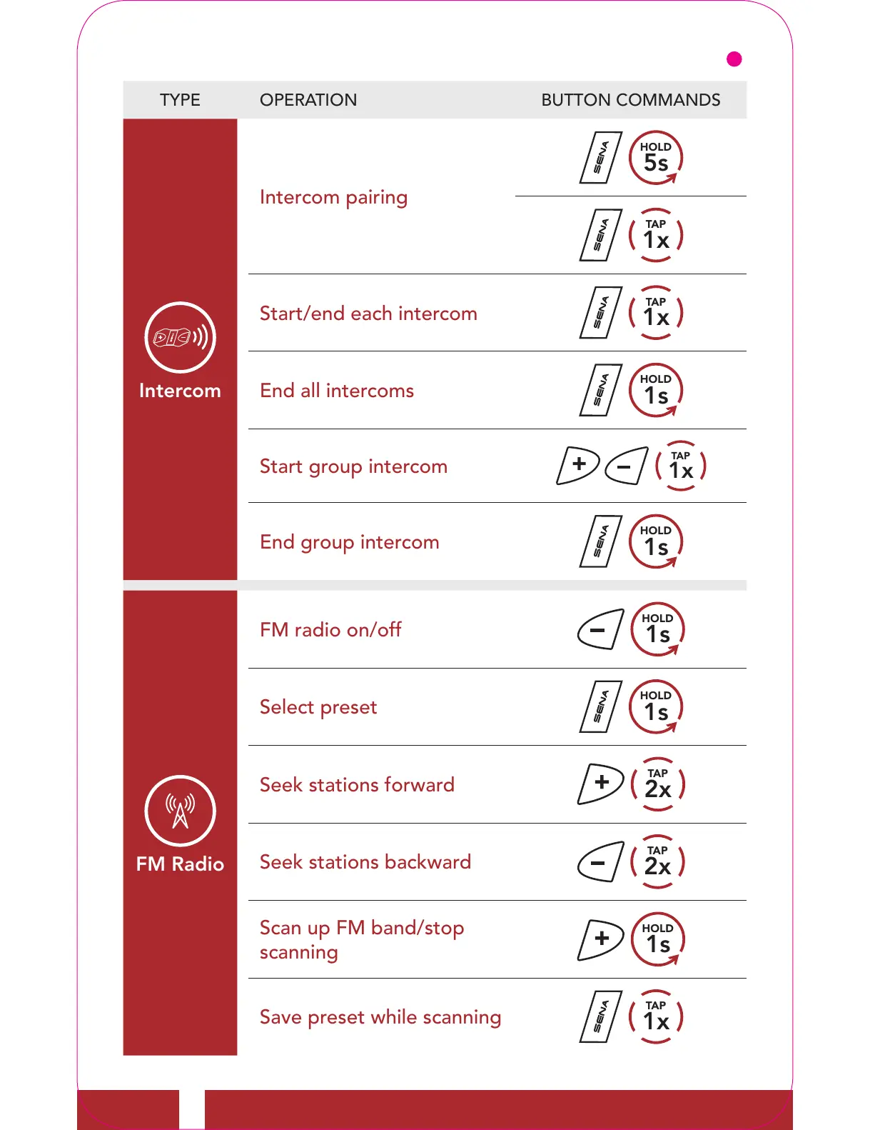 Sena cavalry - Intercom and Group Communication; FM Radio Operations