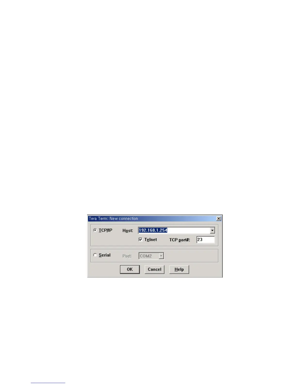 1) Run a telnet program or a program that supports telnet functions such as TeraTerm-Pro or