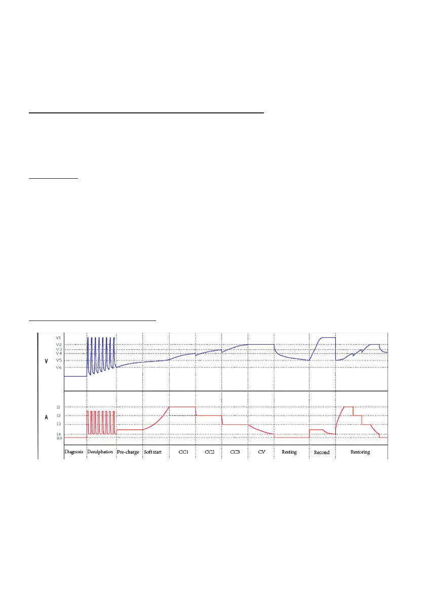 Stage 5 - CC1/CC2/CC3 (Constant Current): The charger automatically adjusts the current