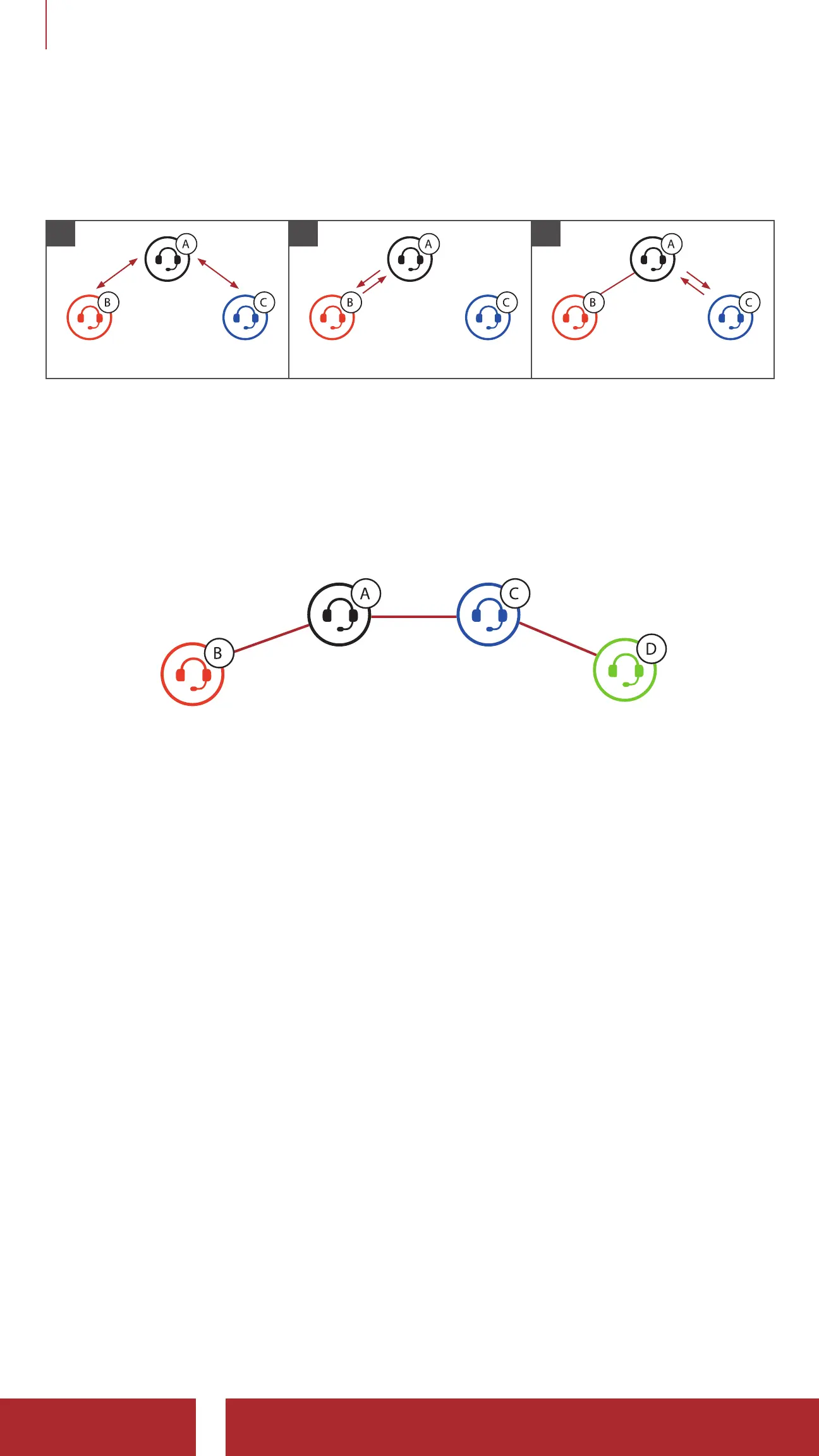 With three Intercom Friends connected, a new participant (D) can