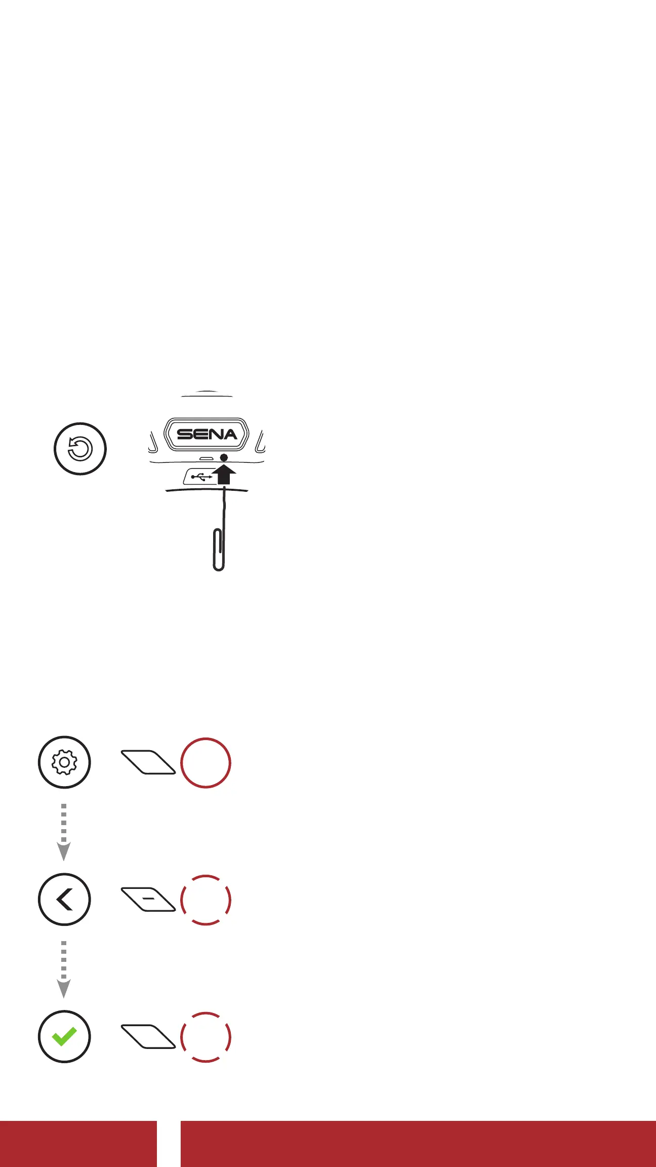 1. Locate the pinhole reset button below Sena logo at the back side of