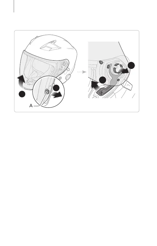 from hook A, and open the shield visor to the fully
