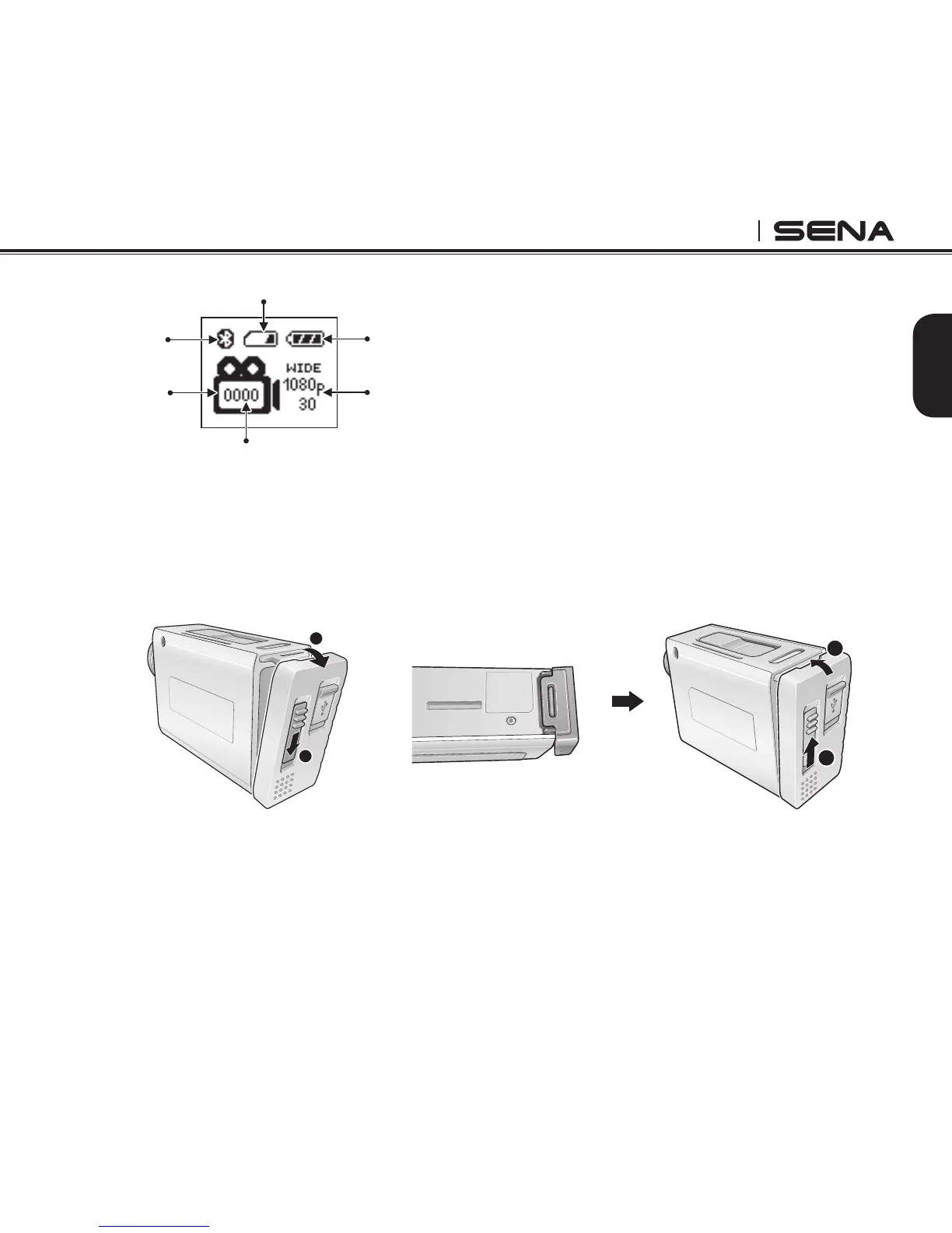 Unlock and open the back door of the camera. Insert a microSD card. Insert the battery. Then close