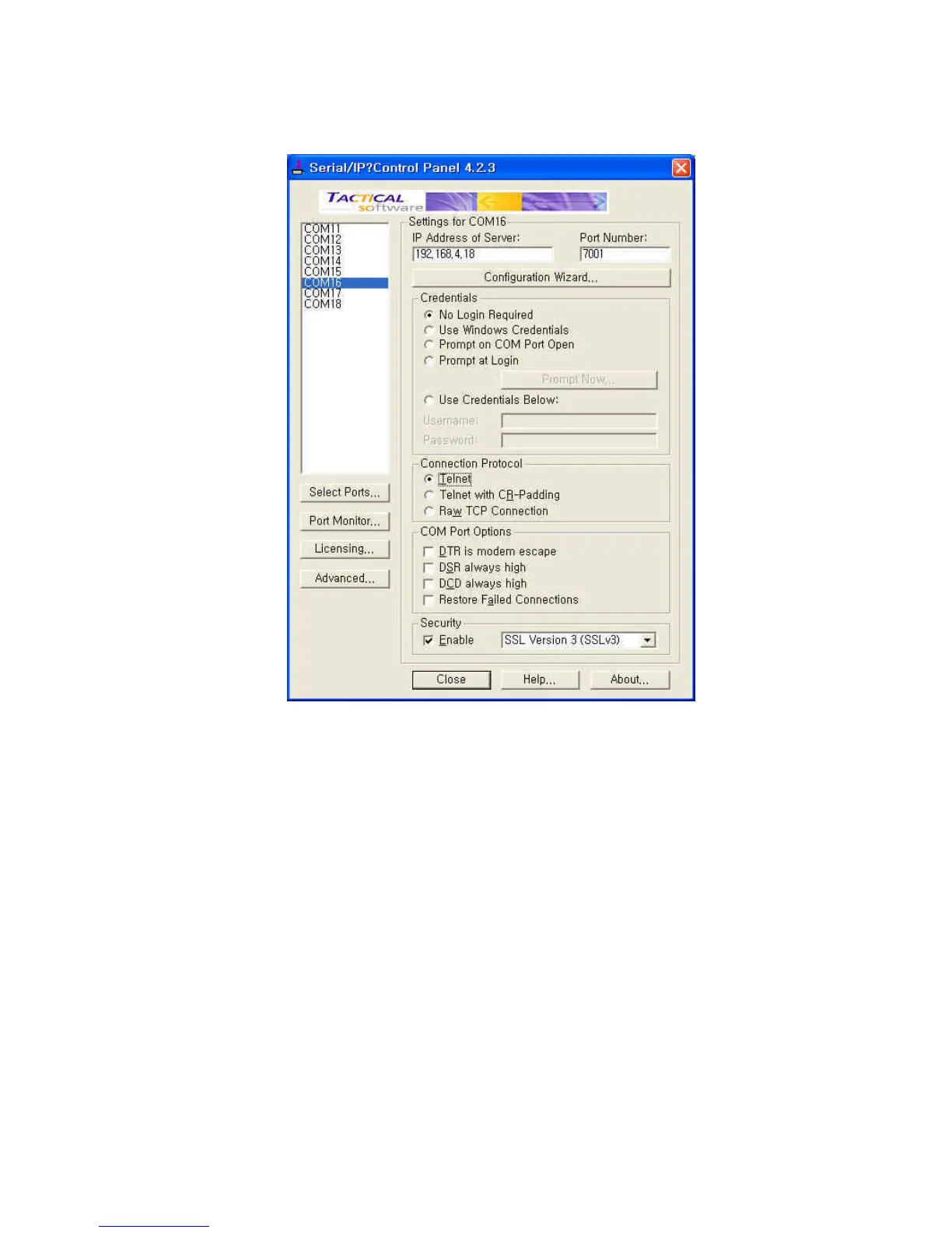 Figure A-19 Set parameters on Serial/IP Control Panel