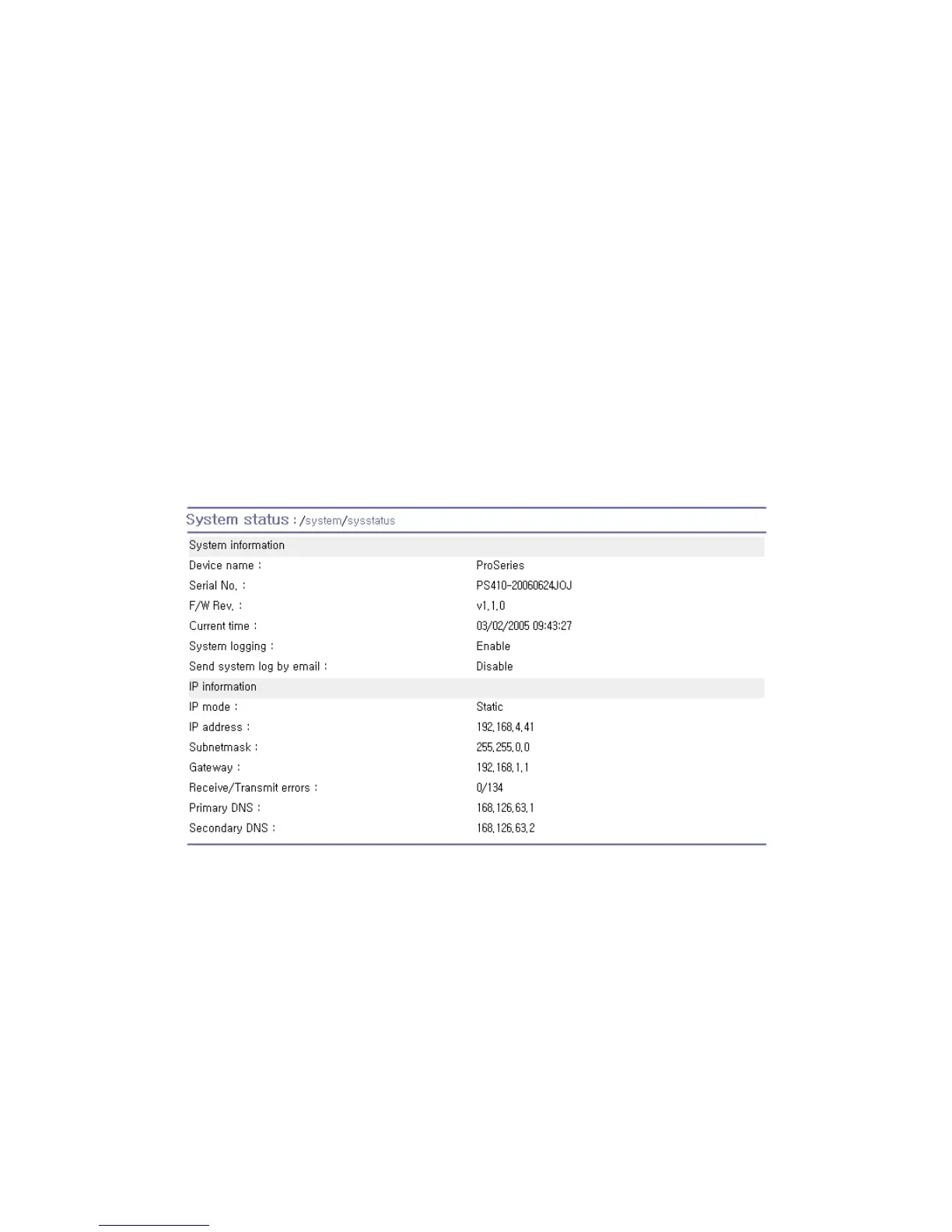 firmware version and the network configuration of the Pro Series. The Pro Series can also be