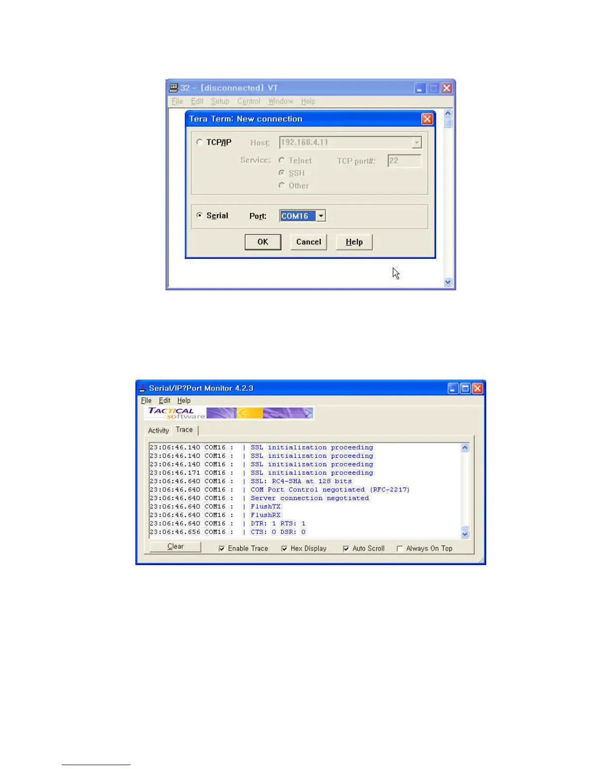 Step 6. User can monitor or trace the connection status using Serial/IP Port Monitor or Trace