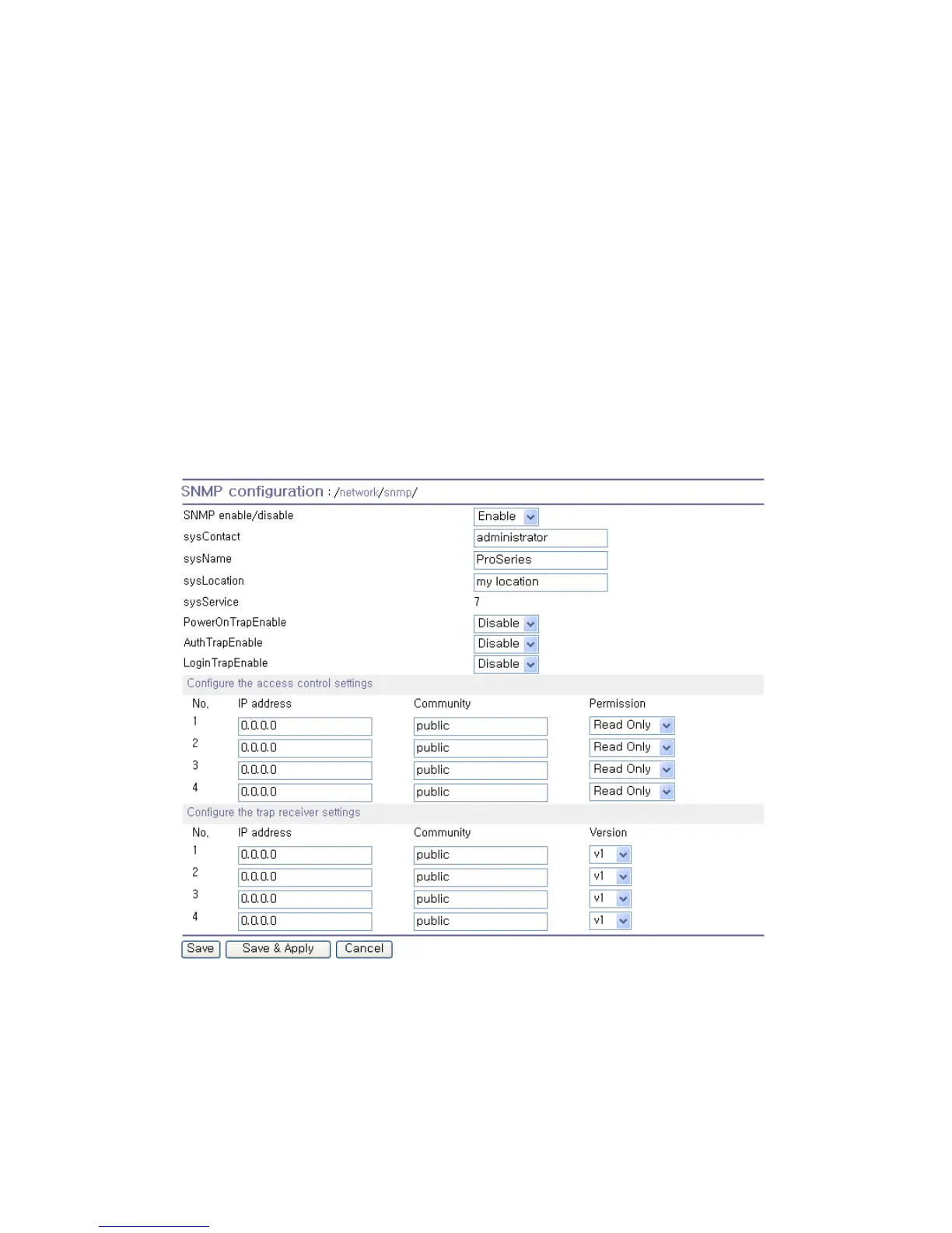 information exchange and action control. Figure 3-2 shows a SNMP configuration screen via a web