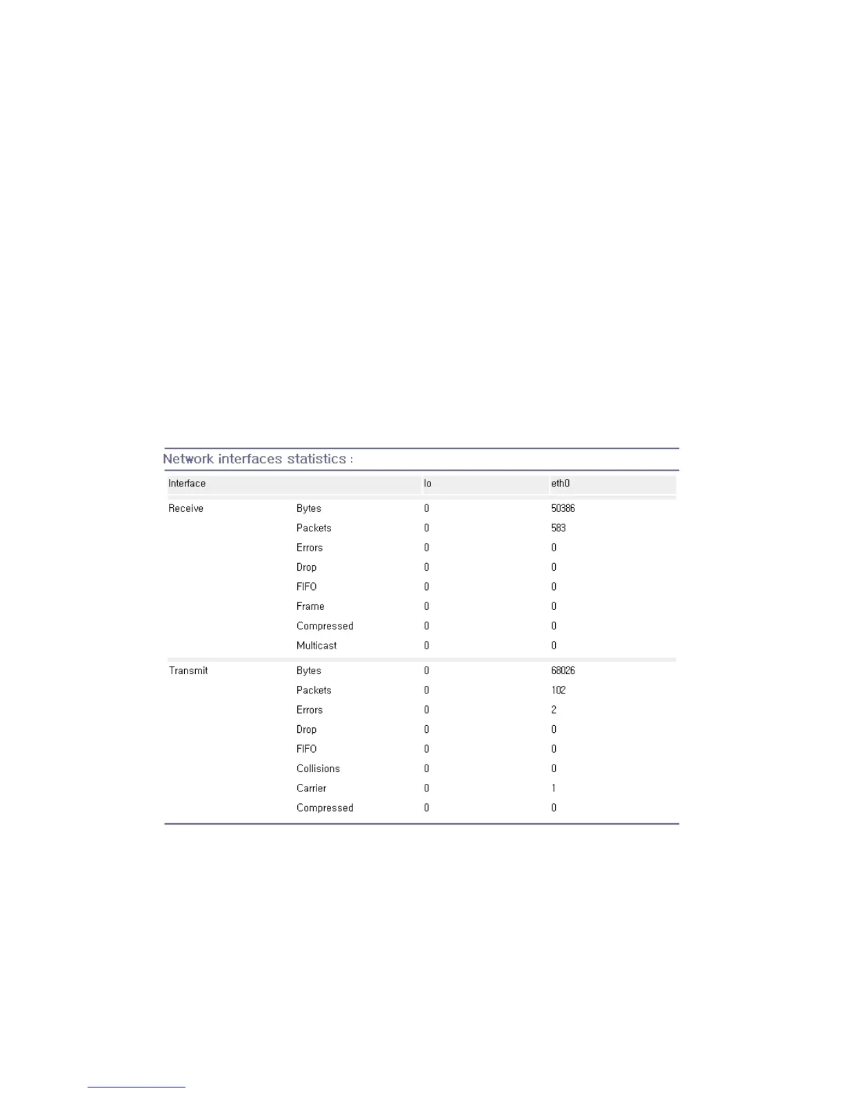 Network interfaces statistics displays basic network interfaces usage of the Pro Series, lo and eth0. lo