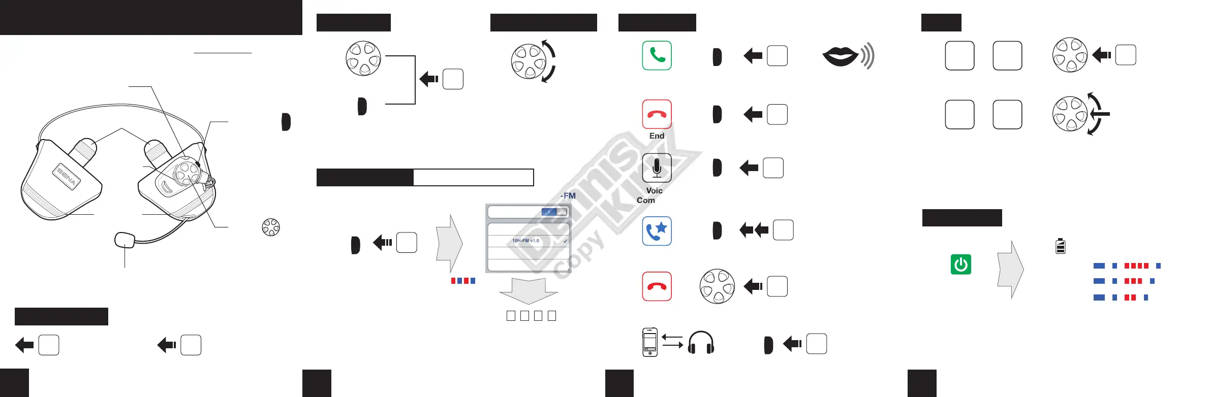 Sena SPH10-FM-01 - Device Operation and Connectivity; Power and Volume Control; Mobile Phone Functions; Music Playback and Controls