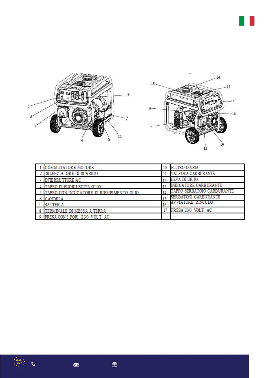 generatore per familiarizzarvi con gli alloggi dei vari comandi e regolazioni. Conservare questo manuale per essere