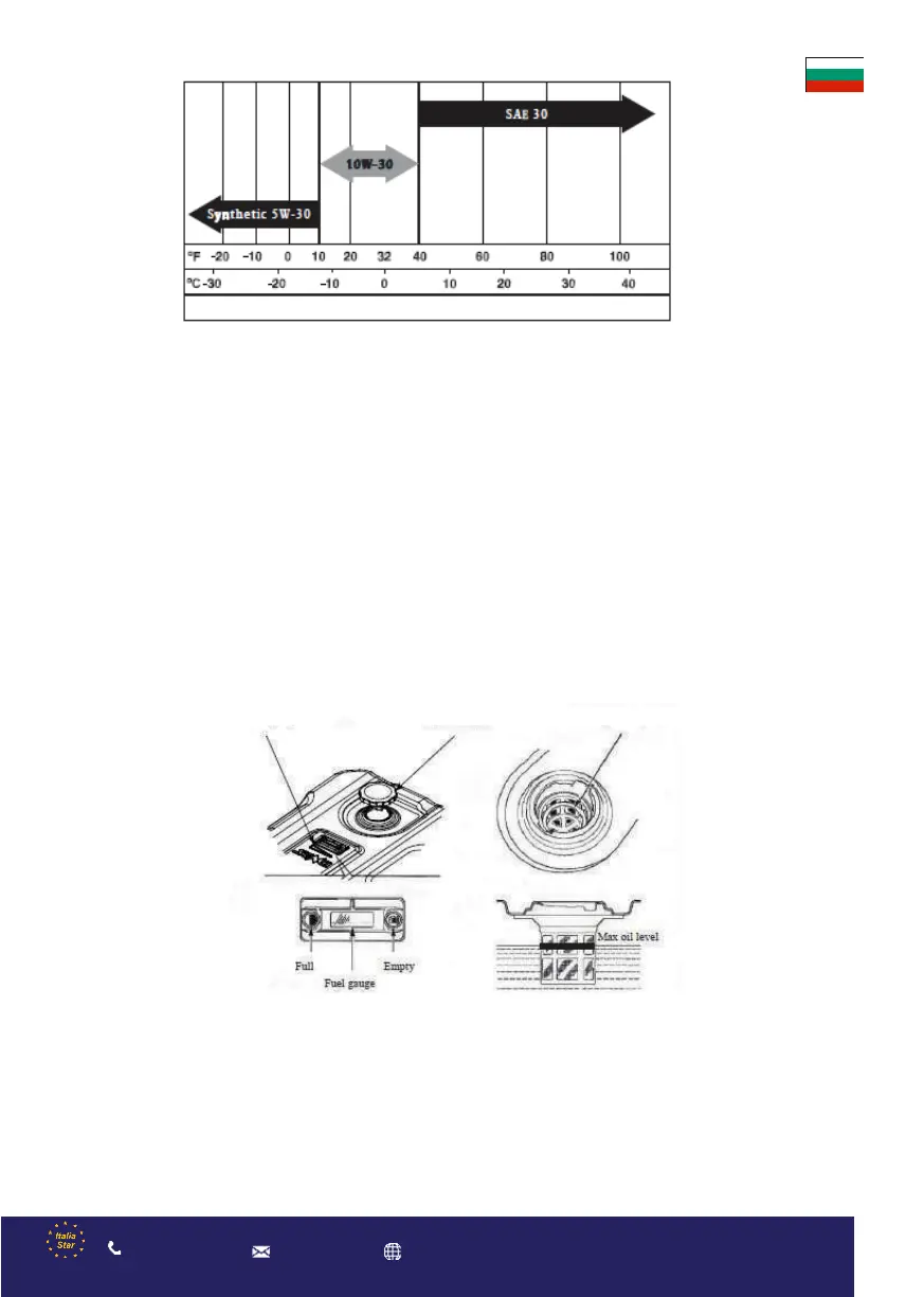 Проверявайте нивото на маслото преди всяко пускане на двигателя. 4.2 ДОБАВЯНЕ НА ГОРИВО Опасност