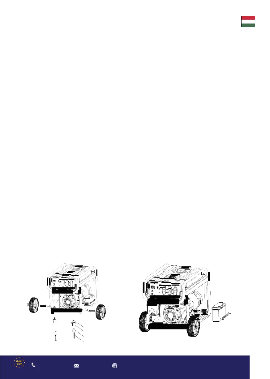 * Hagyja a generátort a karton csomagoláson, amíg fel nem illeszti annak kerekeit.