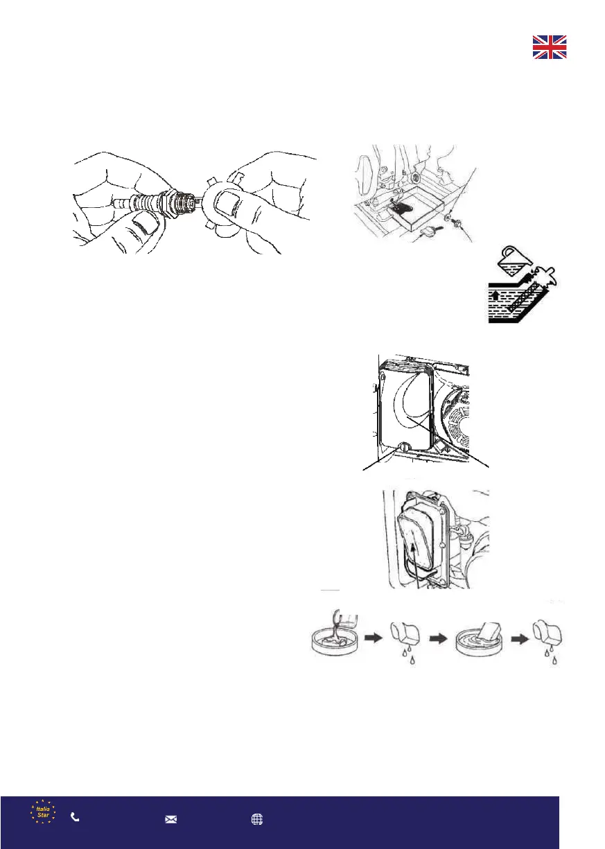Wash in soapy water. Squeeze filter dry in clean cloth (DO
