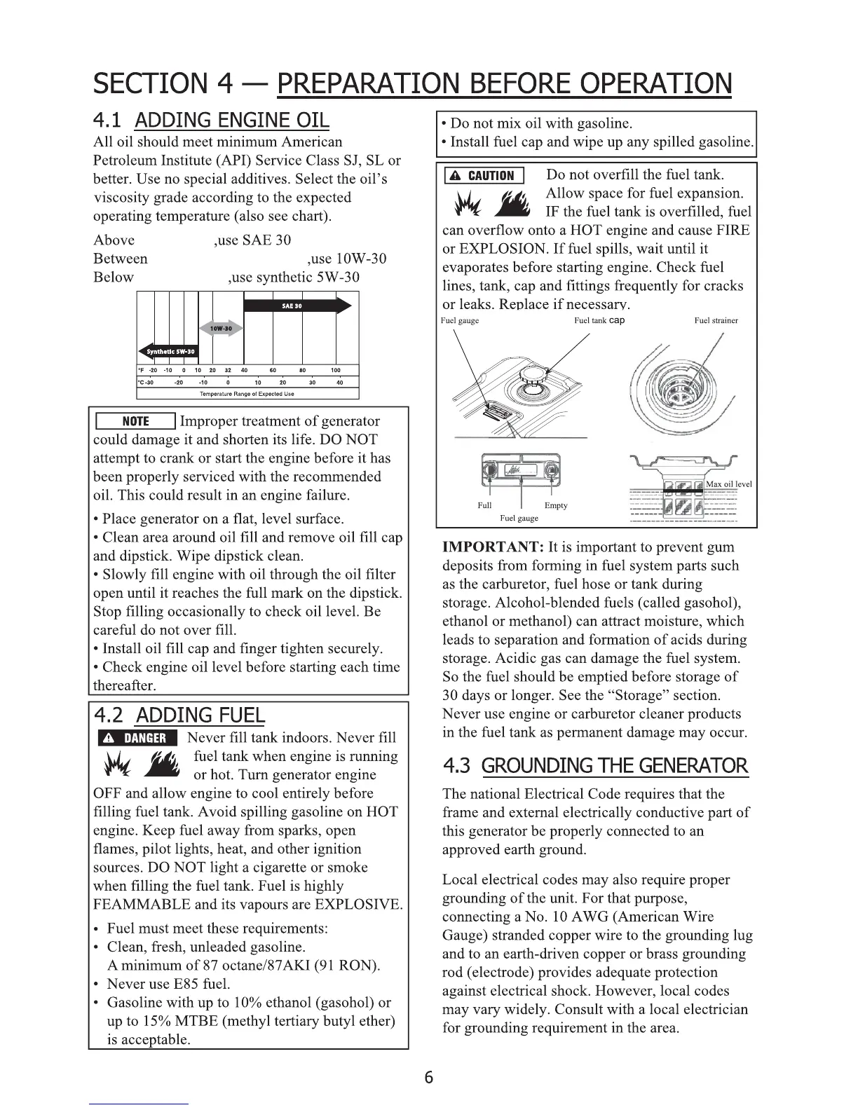 Senci SC10000E - Preparation Before Operation; Adding Engine Oil; Adding Fuel; Grounding the Generator