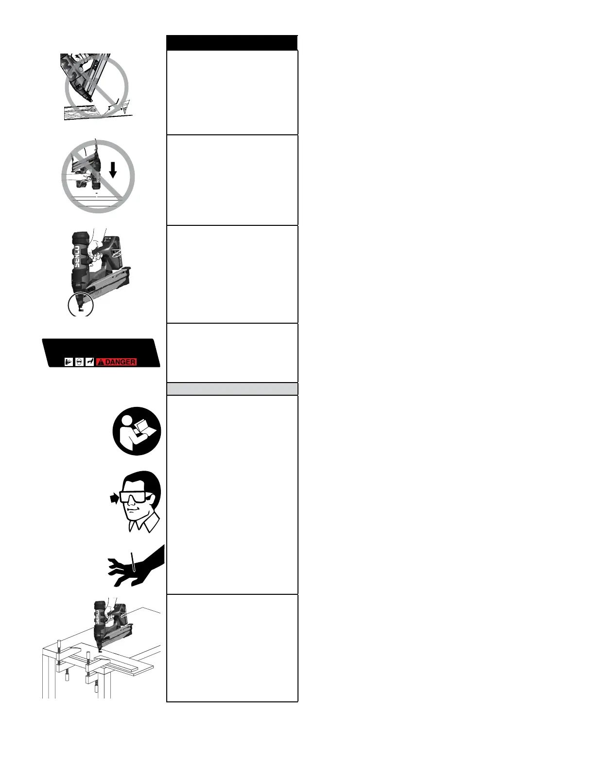 glasses with side shields. (3) Keep fingers AWAY from trigger when not driving fasteners