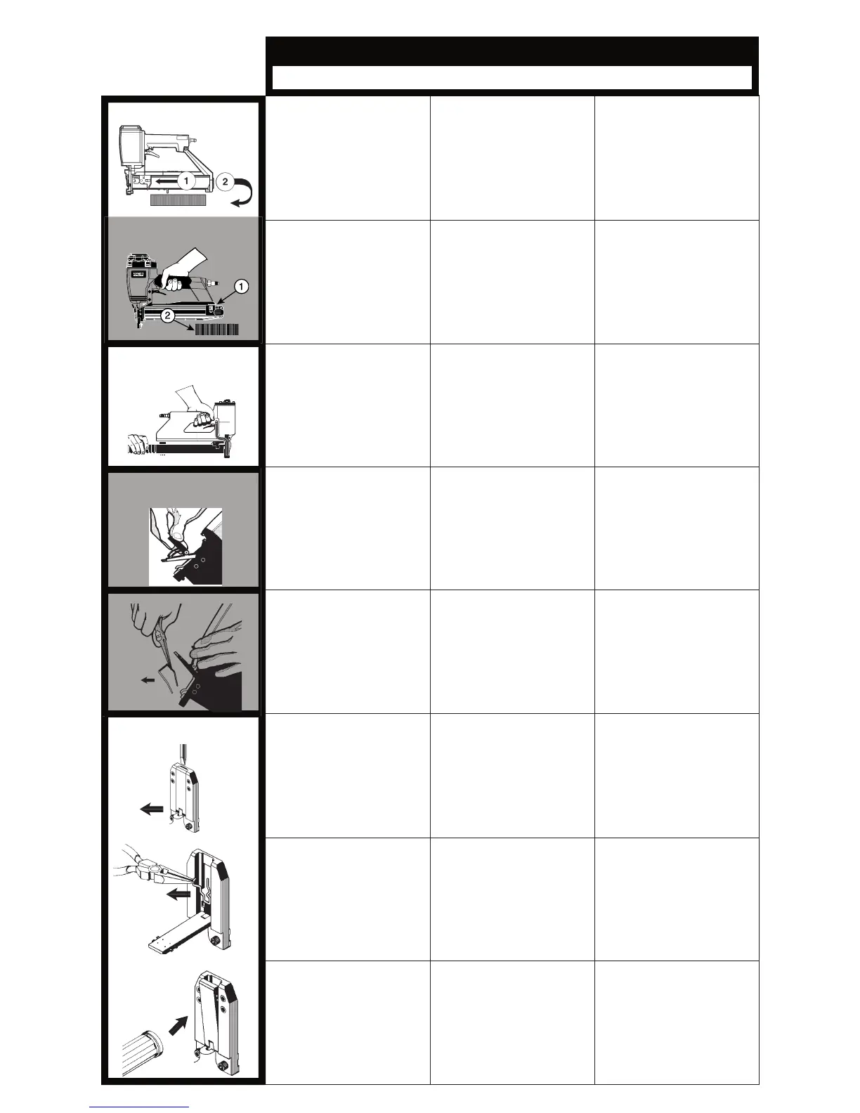 Remove jammed fastener. Retirez le projectile coinçé. Remueva el sujetador atascado.