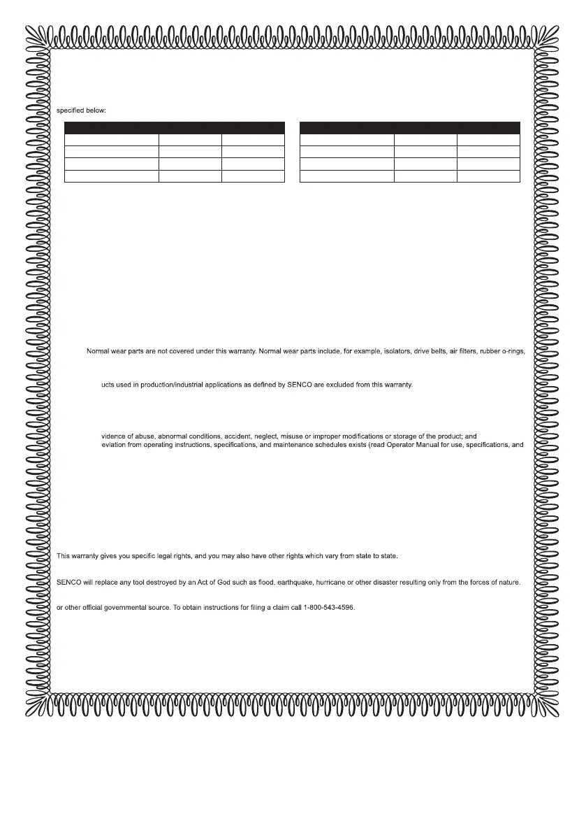 Authorized Warranty Service Centre. A list of SENCO Authorized Warranty Service Centres can be found at www.senco.com or by calling