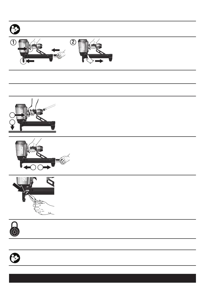 Do not load with workpiece contact (safety element) or trigger depressed.