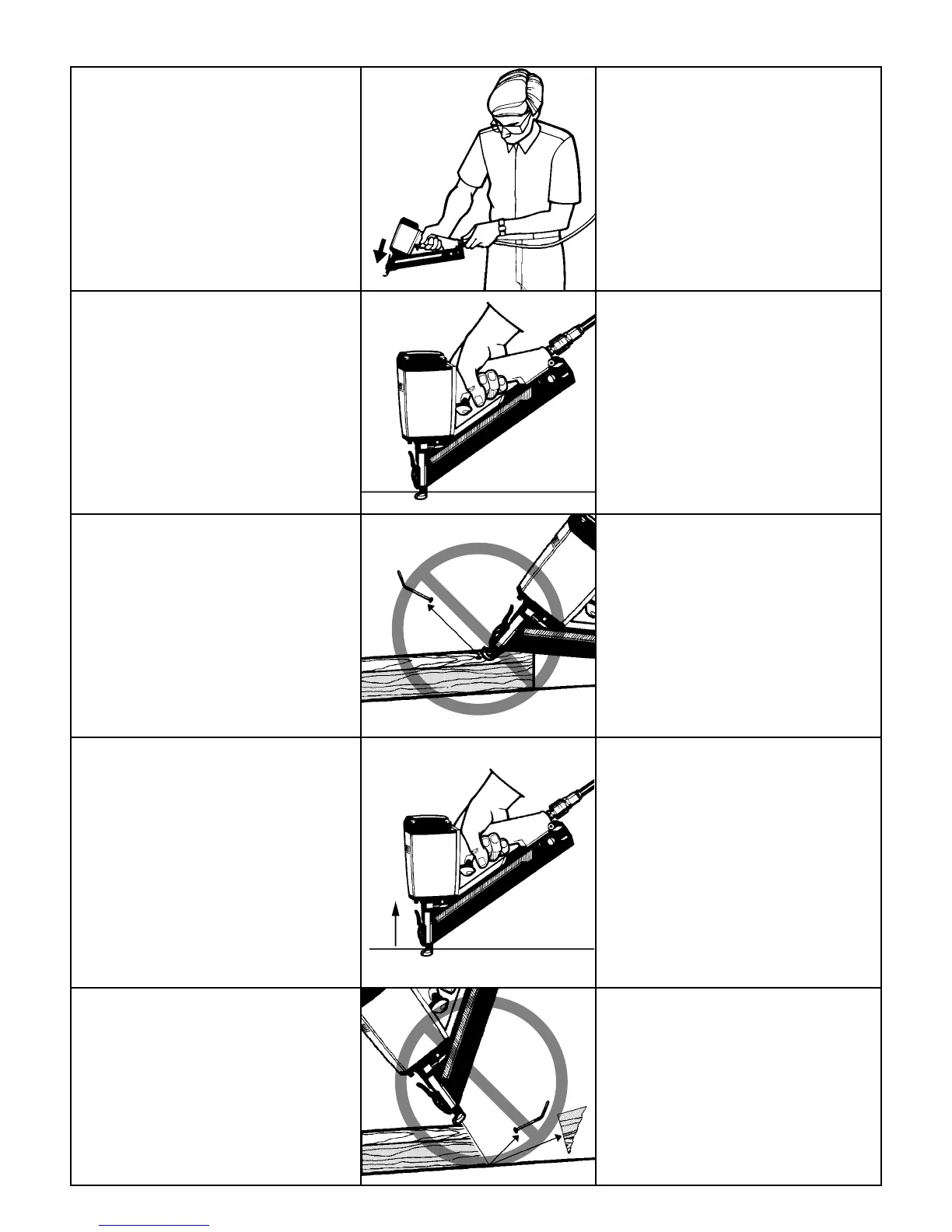 ● Drive fasteners into work surface only;